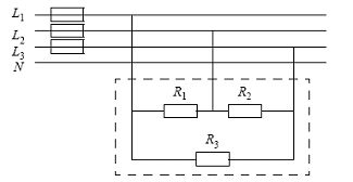 Die drei Heizwiderstände eines Wärmespeichers sind nach Abbildung an das Drehstromnetz angeschlossen (R1 = R2 = R3 =1 kΩ):