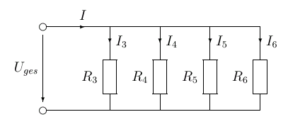Bestimmen Sie den Gesamtwiderstand, den Gesamtstrom und die dargestellten Teilströme! (Uges = 12 V)