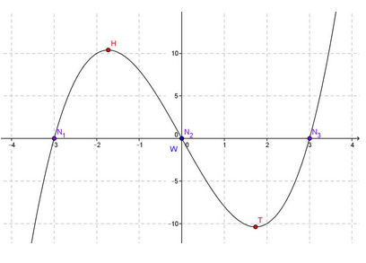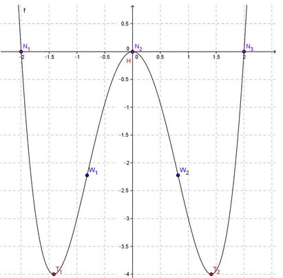 - Ableitungen, Symmetrie, Nullstellen, Extremstellen, Wendestellen und Graph
