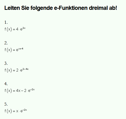 - Regeln zum Ableiten von e-Funktionen, Beispiele und Übungsaufgaben